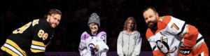 Concord-Carlisle High School junior Emma Robertson dropped the puck at the Boston Bruins’ Hockey Fights Cancer Night on Thursday, Oct. 23.