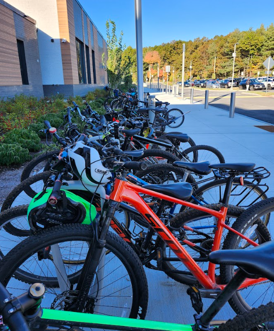 Bikes are lined up at the Ellen Garrison Building at Concord Middle School during the annual Walk, Bike and Roll to School Day. (Photo Courtesy Concord Public Schools)