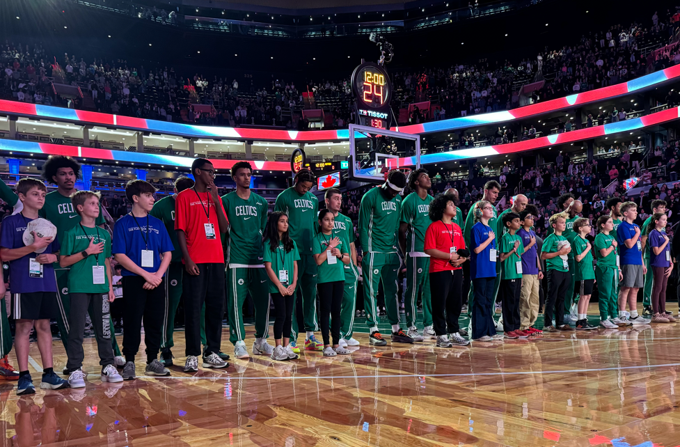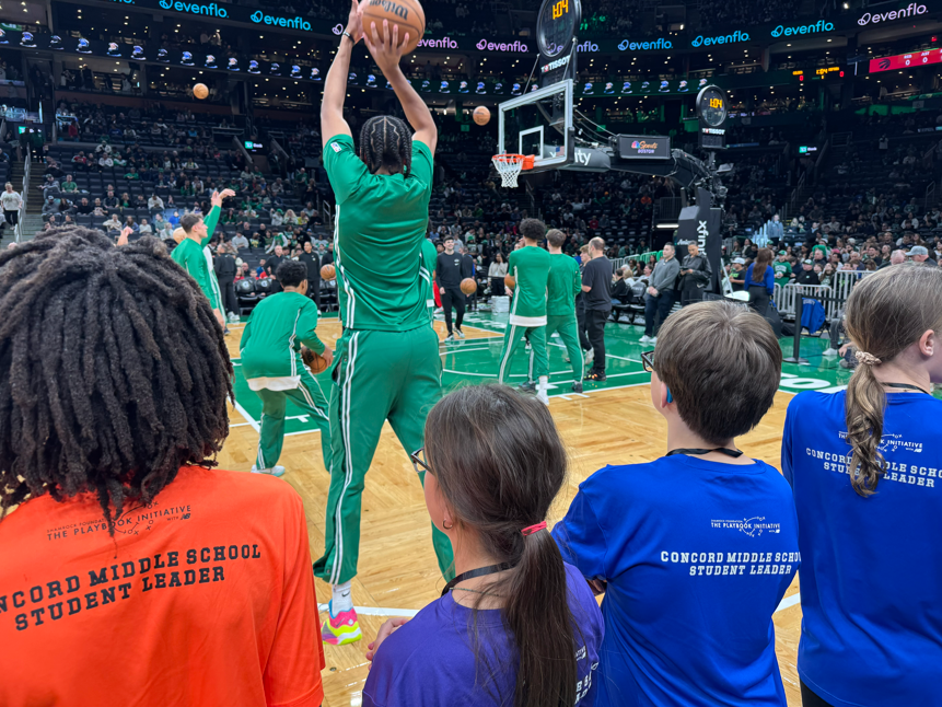 CONCORD — The Playbook Initiative Student Leaders from the Ellen Garrison Building at Concord Middle School took the floor during the national anthem at the Oct. 15 game at TD Garden, standing alongside the Boston Celtics and Toronto Raptors.